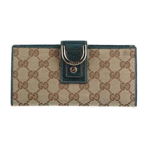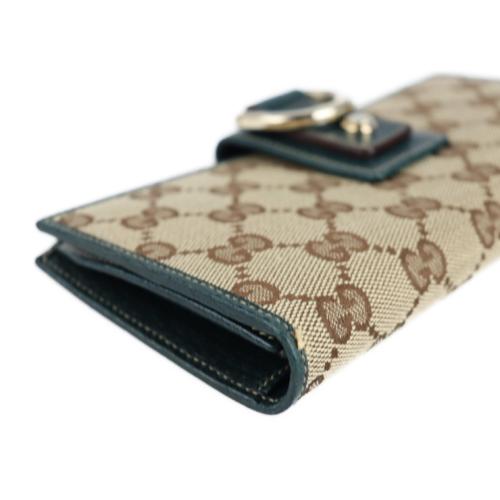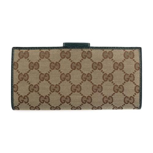 GUCCI グッチ 二つ折り財布 141412 GGキャンバス ベージュ グリー【本物保証】